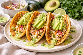 Smashed Crab Tacos with Cabbage Slaw & Cilantro Lime Crema
