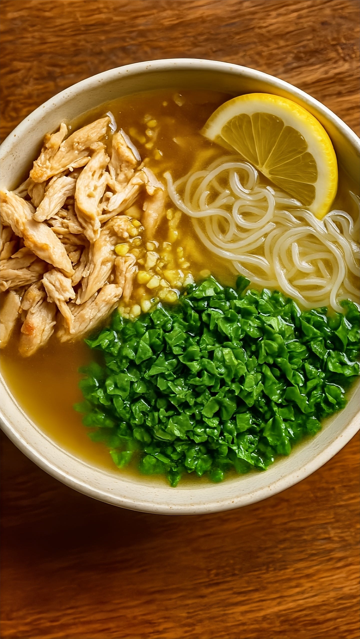 I’ve been making versions of this soup for years, but this one’s my favorite: it uses bone broth for gut-healing collagen, garlic and ginger for their natural antimicrobial benefits, lemon for brightness, kale for fiber, and shredded rotisserie chicken for an easy protein boost. Add miracle noodles if you want to make it a little more hearty and fiber-rich (and low-carb friendly).