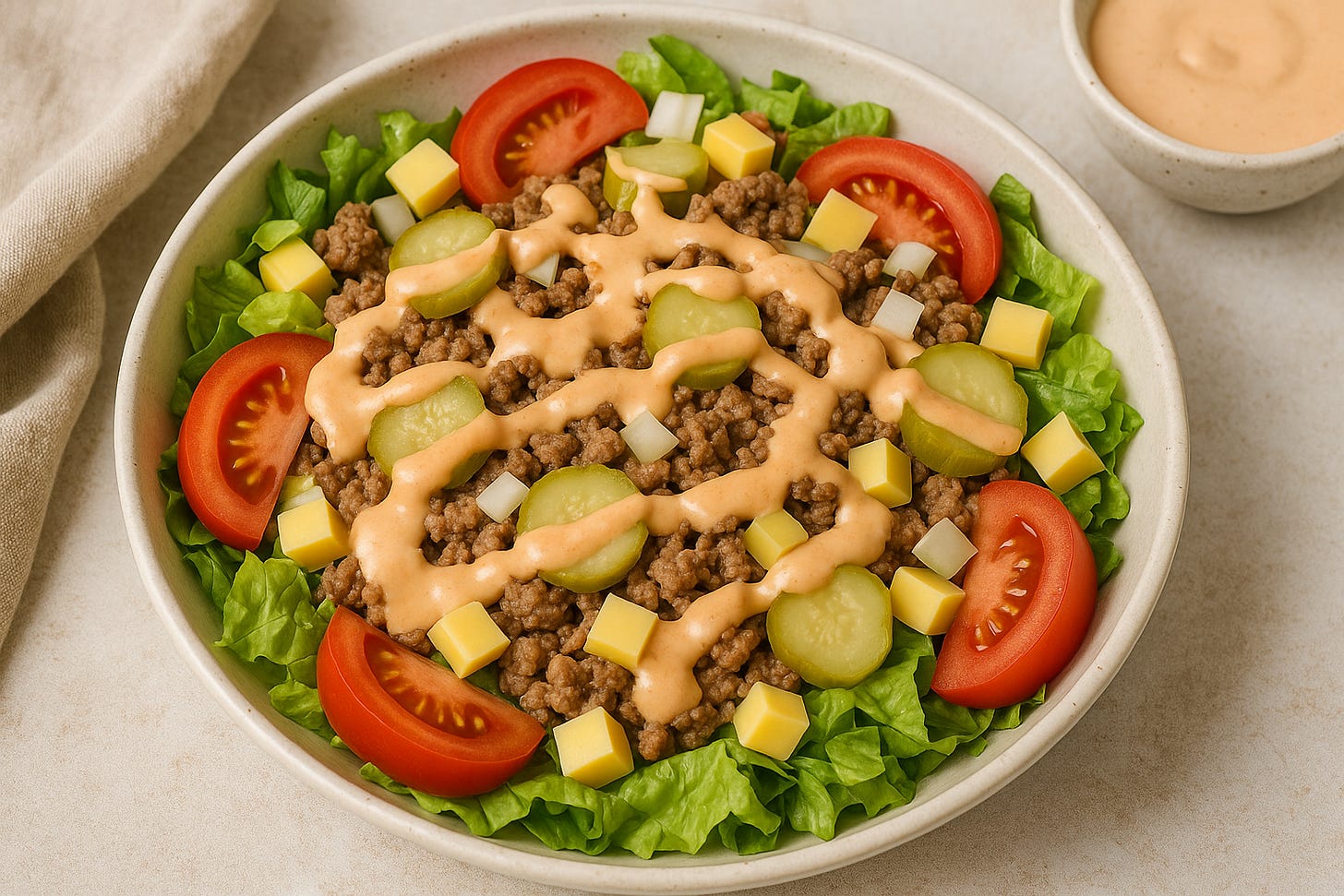High-Protein Big Mac Salad with Light Special Sauce Dressing