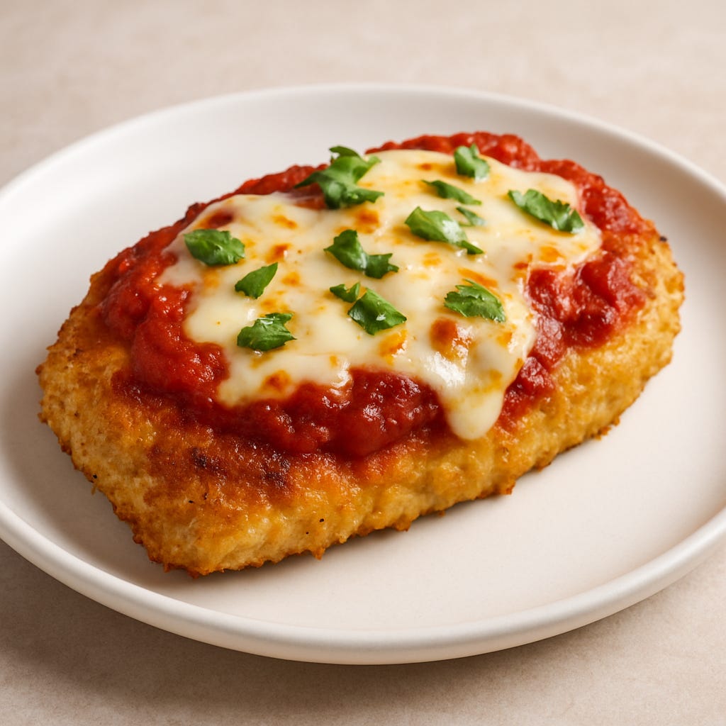 This high-protein, low-carb Chicken Parm is crispy, cheesy, satisfying, and packed with flavor… without the carb crash.