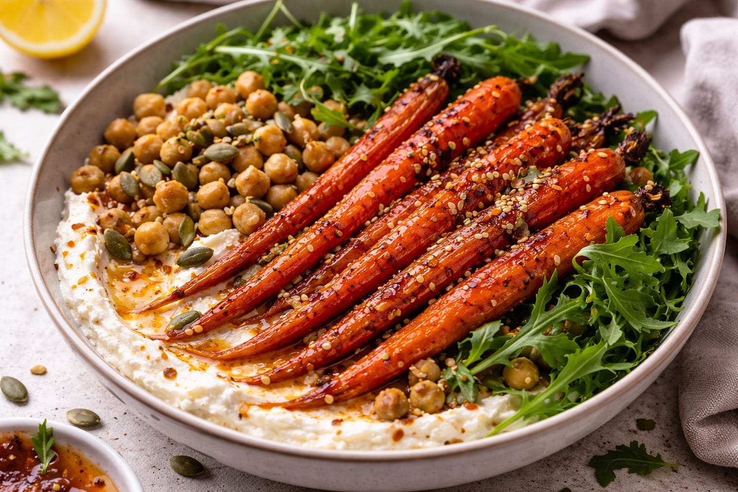 Hot Honey Roasted Carrot & Whipped Feta Bowl