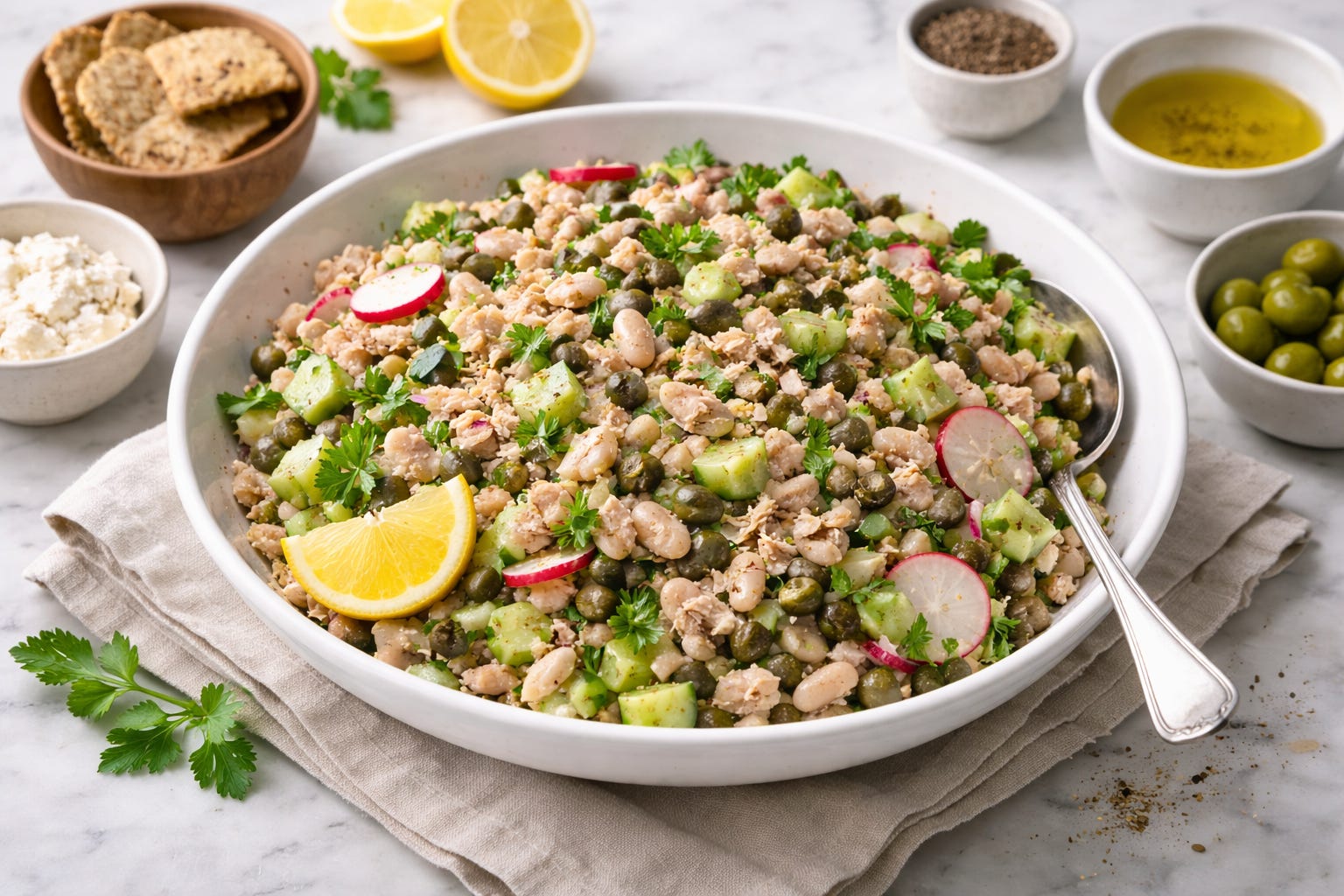 Mediterranean White Bean & Tuna Crunch Salad