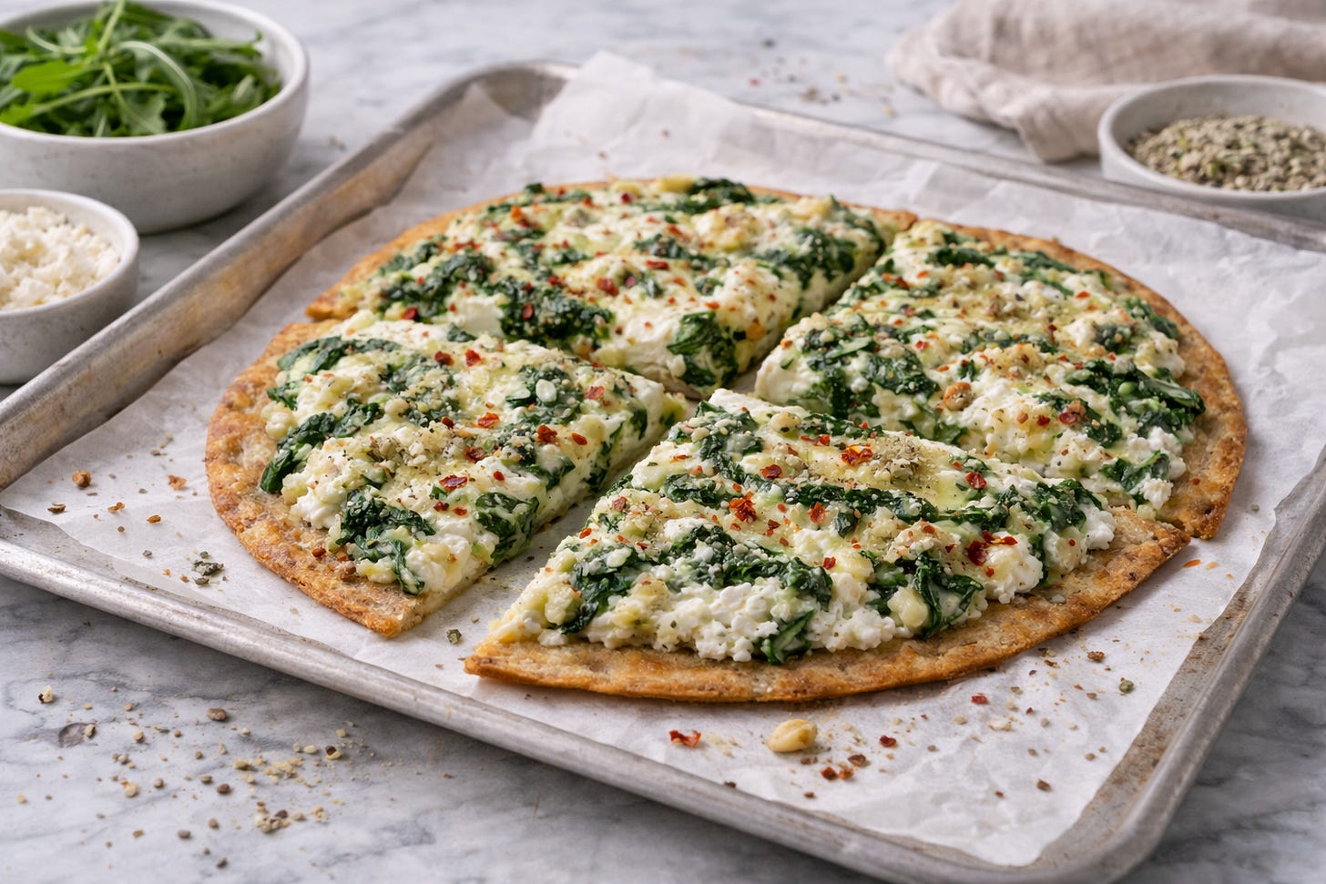 Savory Cottage Cheese & Spinach Breakfast Flatbread