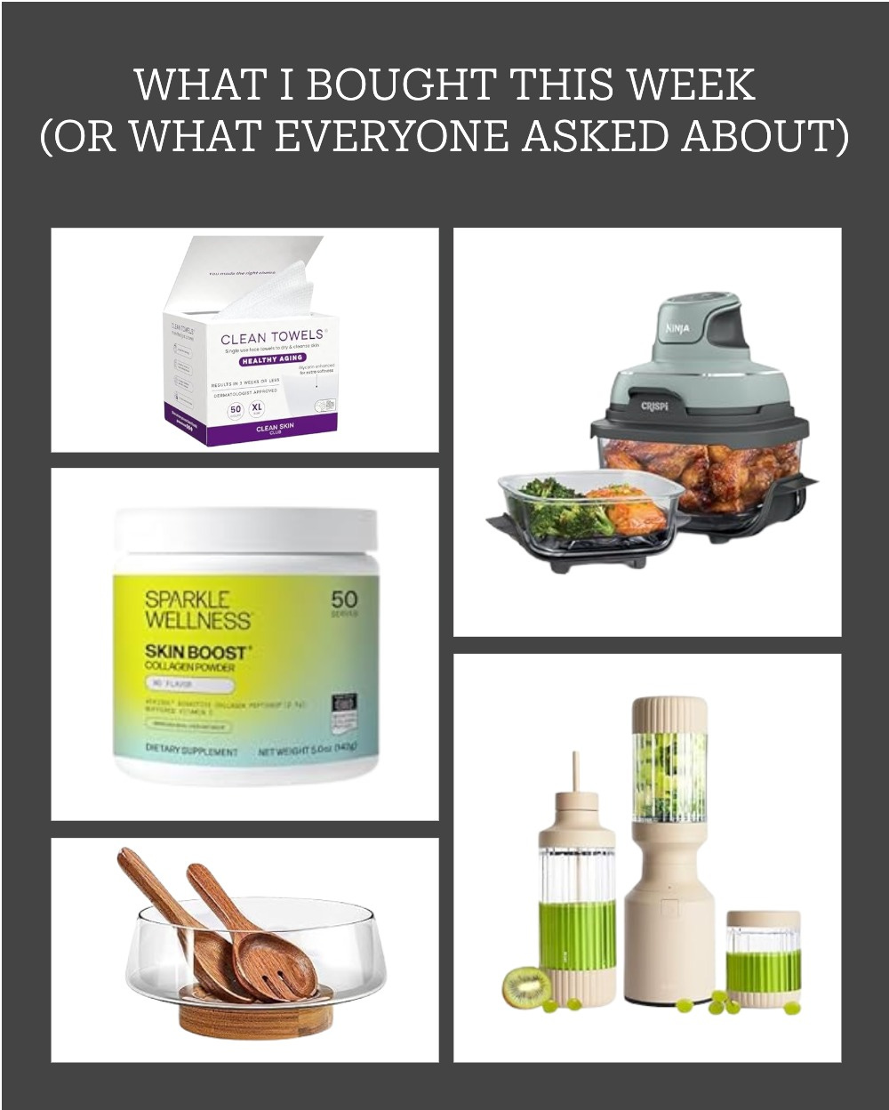 From the blender and air fryer that I use pretty much daily to some skincare essentials, heres what I was asked most about this week. Also - I found the perfect glass and wood salad bowl that I love. It’s dishwasher safe and stunning.